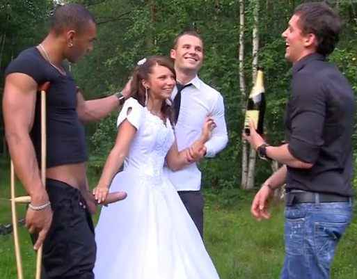 Жених разрешил друзьям трахнуть свою невесту прямо в день свадьбы и она осталась очень довольна