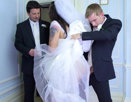 В последние полчаса перед свадьбой ранее уверенная в своем выборе невеста принялась сомневаться и паниковать, чем успешно воспользовался друг жениха, который уже давно планировал подкатить к девушке свои яйца. Поняв, что времени у него в обрез, Тимми просто засосал красотку и принялся стягивать с нее трусики. И она ответила взаимностью. Уже совсем скоро, удовлетворив подругу орально, парень жестко отодрал ее в киску и в анал. Интиму не помешал даже отец невесты, периодически заглядывающий к ней в комнату.