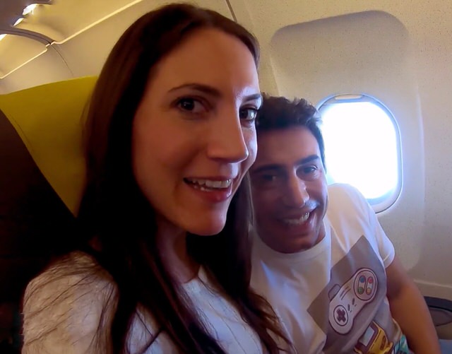Веселая пара сняла порно в самолете пока никто из пассажиров не видит