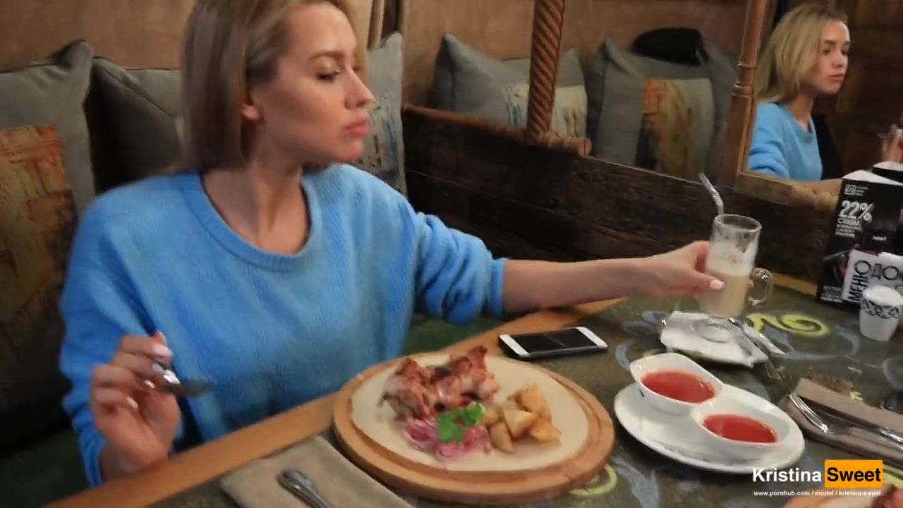 На первом же свидании Сережа повел свою подружку в торговый центр, сделав ей парочку дорогих подарков, а закончил вечер ужином в ресторане. Не удивительно, что получившая столько приятных сюрпризов блондинка решила как следует отблагодарить щедрого любовника оральным сексом. И ее даже не смутило, что за соседними столиками тоже сидят люди – пока никто не видит, шлюшка расстегнула парню джинсы и принялась полировать красную головку члена, время от времени осторожно посматривая по сторонам. Пять минут и довольный парень кончил.