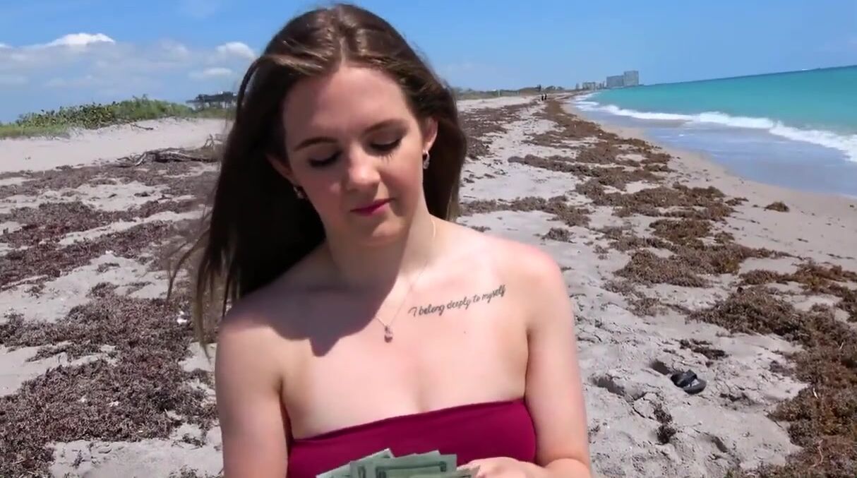 Одинокая и явно скучающая девушка, стоящая на пирсе и смотрящая вдаль на море, привлекла внимание профессионального съемщика. Он тут же предпринял попытку познакомиться и наговорил красавице кучу комплиментов, которые та восприняла очень благосклонно. А чтобы не тратить время на ненужное общение и сразу получить желаемое, пикапер отвалил новой знакомой немного денег, после чего парочка отправилась на безлюдный пляж. Там шалава стала вести себя более раскрепощенно – отсосала большой член и уселась на него сверху своей жопой.