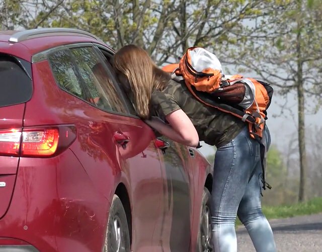 Легкий пикап девушки на трассе - водитель подобрал молодую студентку ради секса