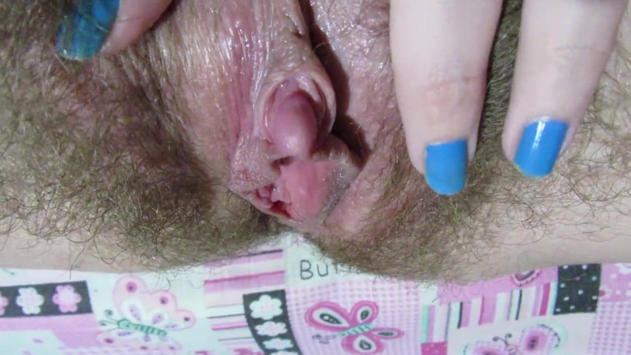 Волосатая пизда и клитор мастурбирующей телки - крупным планом